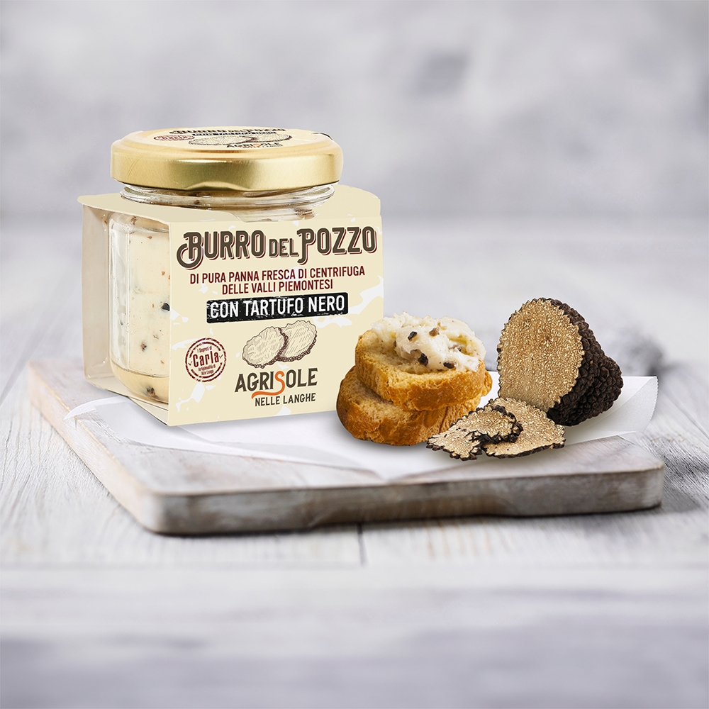 Un’esperienza di gusto unica: il Burro del Pozzo al Tartufo è arricchito con pregiato tartufo, per dare un tocco gourmet alle tue ricette.